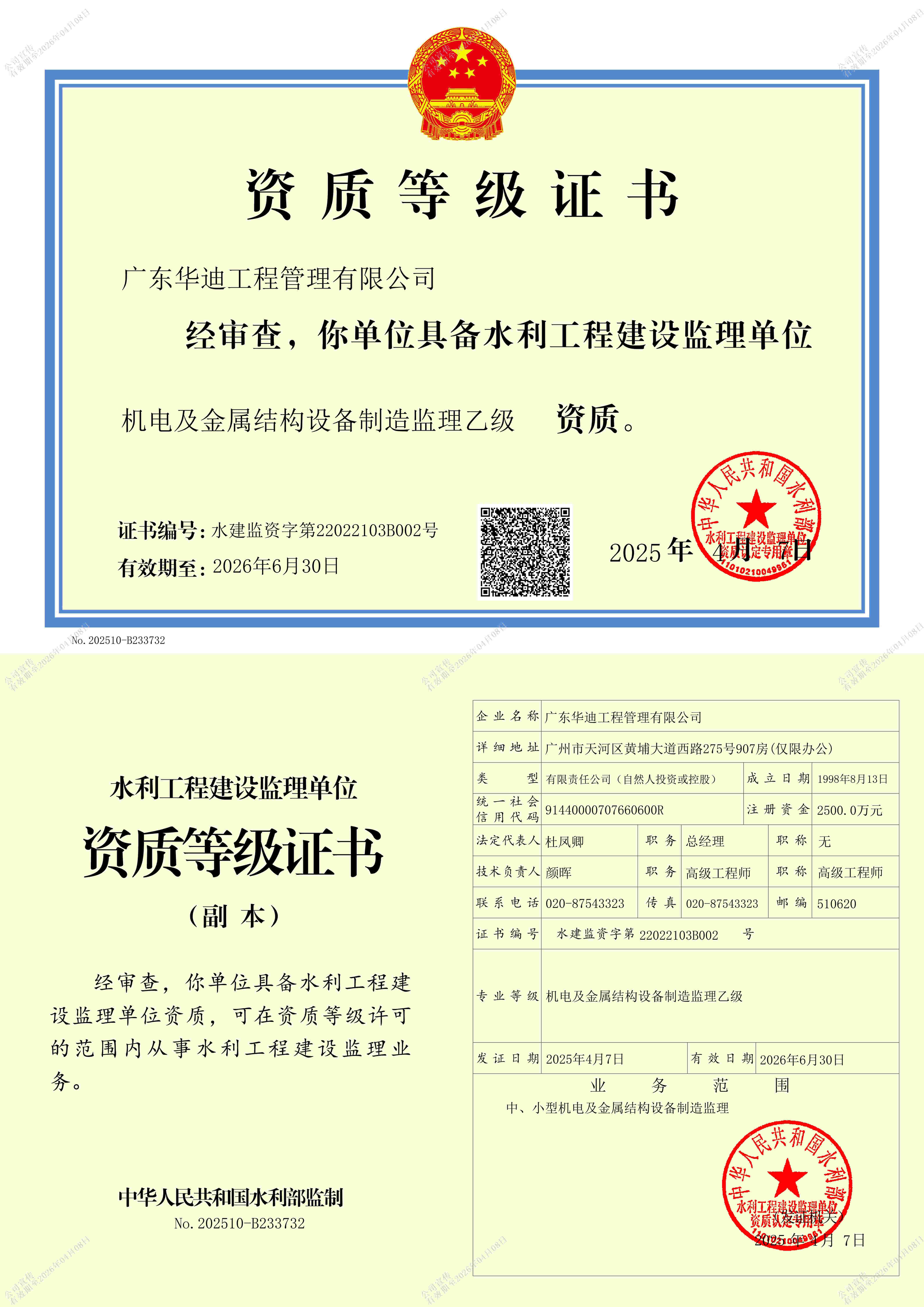 承擔(dān)所有專業(yè)工程類別建設(shè)工程項目的工程監(jiān)理業(yè)務(wù);承接各級水利工程、Ⅱ等及以下各等級水土保持工程的施工監(jiān)理業(yè)務(wù);中小型機電及金屬結(jié)構(gòu)設(shè)備制造、各類各等級水利工程建設(shè)環(huán)境保護監(jiān)理;